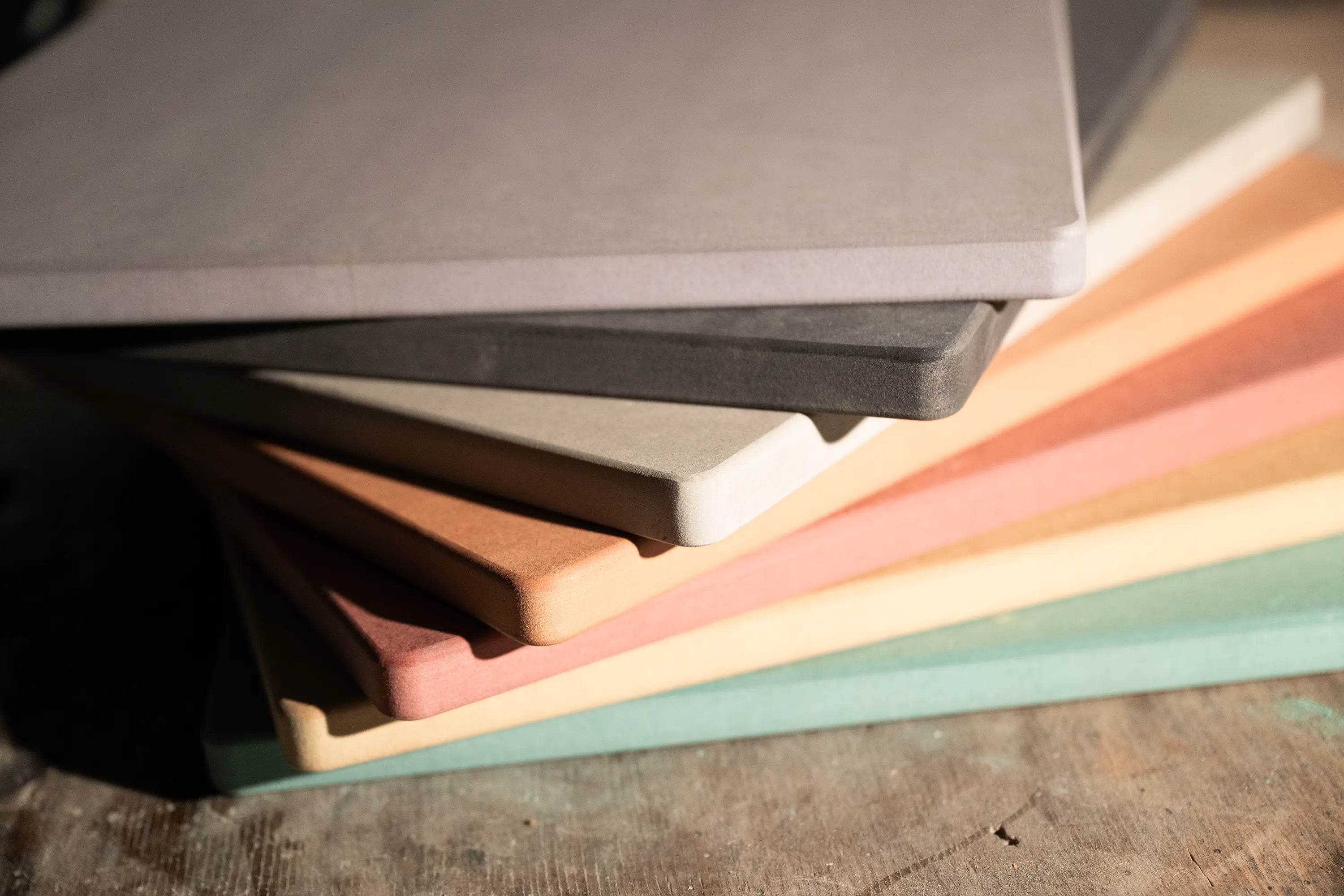 Unsere Grundplatten bestehen aus Valchromat – einem hochwertigen Holzwerkstoff aus Nebenprodukten der Holzindustrie. Mit Tiefe, Struktur und organischer Einfärbung bis auf den Kern.
