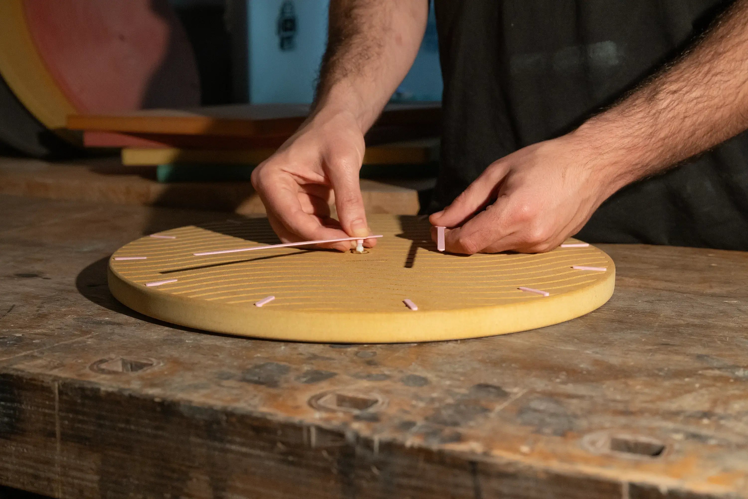DESIGN YOUR TIME – Wanduhren neu gedacht: individuell, aus innovativen Materialkombinationen und mutigen Farben. Wähle Form, Farbe und Akzente – für ein Zuhause, das dich widerspiegelt.
