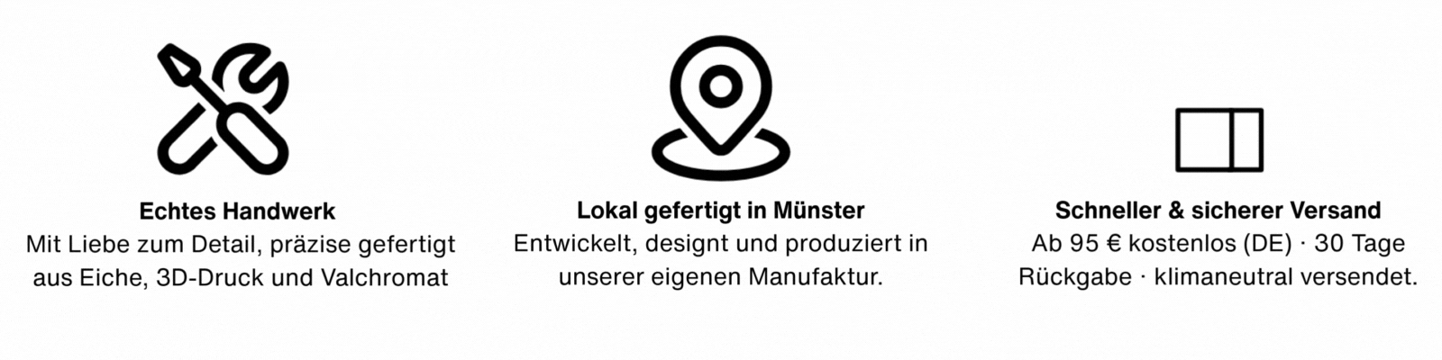 Idee, Design & Fertigung aus einer Stadt – mit viel Liebe zum Material & einem Auge fürs Detail.