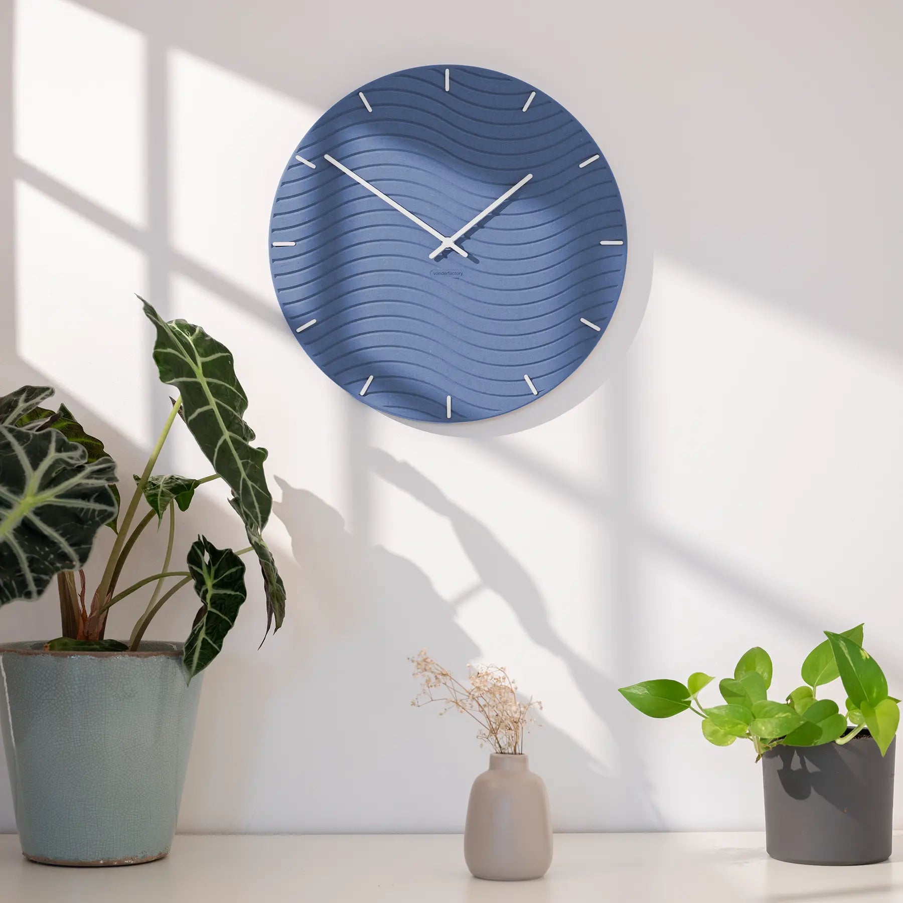 Our wall clocks are made from high-quality Valchromat, a dyed-through wood fiber material produced from recycled pine residues and sawdust. The hands and design elements are manufactured using 3D printing from biodegradable PLA. This way, we focus on sustainability, durability, and modern aesthetics.