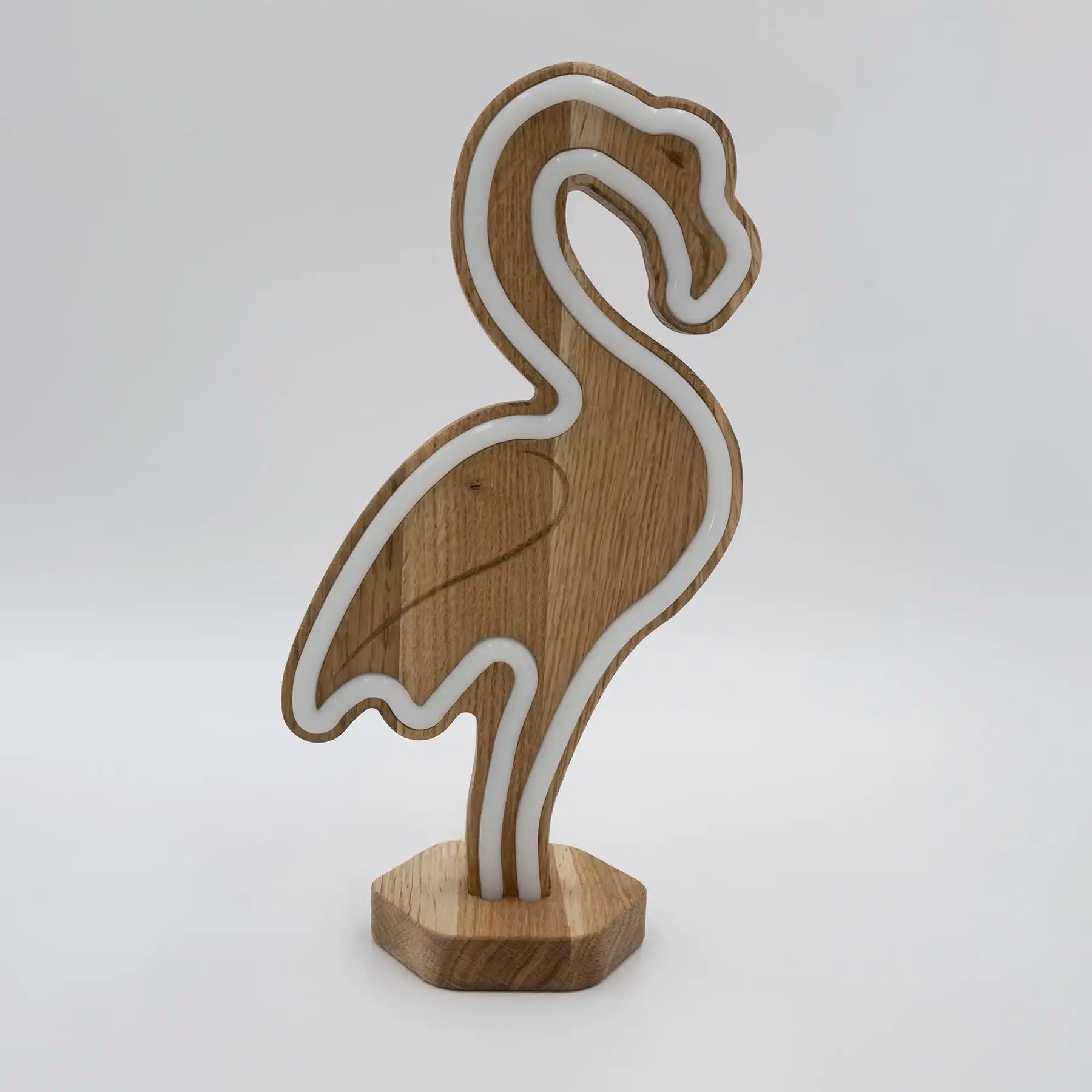 Lignulux DUAL-COLOR Frank der Flamingo - LED Lampe Eichenholz